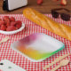 Modern Abstract Art Colourful Blank Template Trendy Pink Red Yellow Orange Blue Green Classic Square Paper Plate.