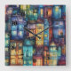 Modern Abstract Art Houses Watercolor Colourful Square Wall Clock