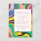 Modern colourful bold abstract rainbow artsy shapes trendy personalised wedding details enclosure card. Pink purple yellow blue colour palette. This card is easily editable. If you need help with the customisation of this product or you need more matching products for this collection kindly message me via Zazzle.
