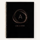 Spiral notebook in chic black features a faux rose gold abstract element encircling your single initial monogram. Personalise with a line of custom text beneath in modern lettering; we love it with a name, notebook contents, business name or favourite phrase. NOTE: THERE IS NO GOLD FOIL ON THIS PRODUCT. The rose gold look is produced using subtle colour variations that mimic the look of foil.