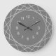 Cool modern wall decor clock in low key grey and white abstract geometric pattern and classic clock face numbers in a wall clock you can hang in your kitchen, dining room, bedroom, or bathroom with modern decor.