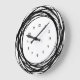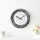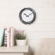 Cool modern wall decor clock in chic black and white abstract geometric circles pattern and classic clock face numbers in a wall clock you can hang in your kitchen, dining room, bedroom, or bathroom with modern decor.