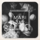 Modern Abstract Black and white painterly flowers Square Paper Coaster