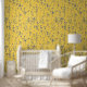 Modern Abstract Blue Yellow Wildflowers Wallpaper