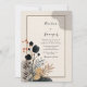 This modern abstract botanical wedding invitation merges organic elegance with a minimalist aesthetic, making it a standout choice for contemporary and nature-inspired events. Set against a textured off-white background, this design features soft watercolor brush strokes in earthy tones and layered botanical elements. Dark navy and muted terracotta florals, golden foliage, and delicate berry sprigs come together in a grounded corner arrangement, framed subtly by a clean, thin border.