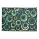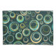 Cool modern design, abstract circles in black green and blue tones. Red accents.