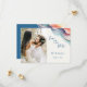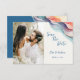 A Photo Save The Date Wedding Announcement designed in bright abstract colour accents. The front text includes: Save the Date, The Bride and Groom's First Names and Wedding Date on a white background. The reverse includes the text: Details to Follow and your Wedding Website on a matching blue background with abstract colour accent. To personalise, simply insert your favourite couple photo into our easy template, replacing the sample image. Move the photo to the left and ensure it covers the area. Next, insert your text details into our template, replacing the sample. Be sure to view the entire Modern Abstract Colour Wave Wedding Collection for matching cards and accessories. Background colours can be changed using our Colour Picker Tool.