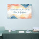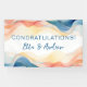 A modern hanging Wedding Reception Banner designed in a bright abstract colour wave with blue accent. The text includes: CONGRATULATIONS, and The Bride and Groom's First Names. To personalise, simply insert the names into our easy template, replacing the sample text. Be sure to view the entire Modern Abstract Colour Wave Wedding Collection for matching cards and accessories.