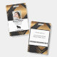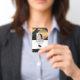 Company employee identification badge with templates created for you. Background is a modern abstract in black, white, and gold.