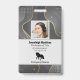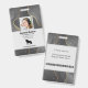 Company employee identification badge with templates created for you. Background is a modern abstract in silver grey.