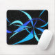 A modern abstract black and blue mousepad with an cool coloured pencil drawing of a wavy blue finned fish.