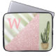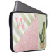 Modern Abstract Coral Glitter Cactus Monogram Laptop Sleeve