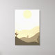 Modern abstract desert scene in neutral tones of peach, brown and taupe, features sun, hills and cacti silhouettes