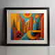 Modern abstract design in the style mixture of Cubism and Surrealism. The aspect ratio is 5:4. It was designed to be printed as 5"×4", 10"x8", 20"×16" or 30"x24"