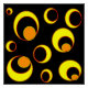 Abstract and colorful geometric trendy design with retro style, yellow and orange circles on black background