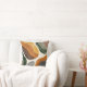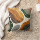 This abstract topographic throw pillow features flowing, organic layers in a warm, grounded palette of terracotta, ochre, forest green, and slate grey.