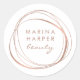 Elegant monogram stickers feature an abstract circle logo in faux rose gold, encircling your name and/or business name in modern calligraphy script and block lettering on a white background. NOTE: THERE IS NO GOLD FOIL ON THIS PRODUCT. The rose gold effect is created using subtle colour variations that mimic the look of foil.