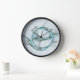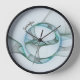 Modern Abstract Fractal Blue Turquoise Grey Name Clock