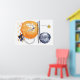 Modern Abstract watercolor shapes and dots with orange, yellow and navy blue colours and black line drawn accents.