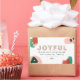 Modern abstract graphic red, pink + green and bold typography joyful holiday design. With hand painted splotches. Part of a bright, fun holiday collection.