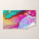 Bath towel set with a fancy artistic abstract design. Watercolor painting with the colours mixing and mingling creating a nice flowing marbled pattern.