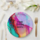 Personalised birthday (or other event) paper plates with a fancy artistic abstract design. Watercolor painting with the colours mixing and mingling creating a nice flowing marbled  pattern.