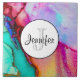 Personalised ceramic tile with a name and monogram initial. Designed with a fancy artistic abstract design. Watercolor painting with pink, purple and turquoise colours mixing and mingling creating a nice flowing marbled pattern.