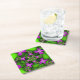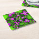 Modern Abstract Neon Pink Green Fractal Flowers Square Paper Coaster