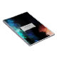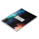 A personalised notebook with a modern abstract design. Paint splatters and swirling colours in turquoise, white, orange and black with hints of blue.
