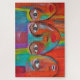 This modern design features an abstract painting of three colourful faces
