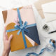 This fun holiday gift wrap features a painted background in shades of pale pink, dusty blue, rust, and navy. This design coordinates with our Abstract Painted Frame holiday photo cards. See coordinating items in the collection!
