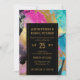 Elegant sophisticated acrylic painting wedding invitation in vibrant hot pink, teal, yellow faux gold glitter, and black colour palette with abstract brushstrokes and faux gold modern contemporary fully editable typography script. ++++++++++ The invitation is suitable for all seasons trendy urban chic style weddings. Digital download available.