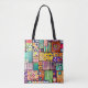 This modern tote bag features an abstract patchwork pattern for a look that is artistic and stylish, yet fun and entertaining. Makes a great gift for Christmas, birthdays, Mother's day, Grandparents' day and more.