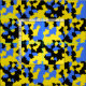 Modern yellow blue and black Abstract camo like unique Fabric Design.