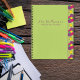Tell you favourite teacher how much they mean to you and say thank you with this beautiful, abstract pattern notebook featuring original artwork from the creator behind Useful & Beautiful. The multi-layered, multi-coloured bright polka dots against a lime green background, placed along the edge the note book design, are bounded by a contrasting fine edge to really make the colours pop in this elegant and classy design. Personalise this notebook with your teacher’s name to say thankyou for all they do for you. They can use it in school or at home to brighten their day.