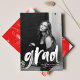 Celebrate your graduate’s achievement with this modern graduation announcement, featuring their photo with "grad" elegantly displayed in a white brush script overlay. Customise the front with the graduate’s name, school name, and graduation year for a personal touch. The back of the card showcases bold red brushstrokes, adding a vibrant and artistic flair. Perfect for high school and college graduates, this stylish photo graduation announcement is a memorable way to share the exciting news with family and friends.