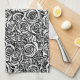 Modern Abstract Rose Pattern, Black and White Tea Towel