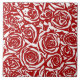 Tile in a modern, semi-abstract, all over pattern of roses and buds - mixed media digital art in deep Chinese red / crimson and white