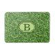 Retro modern bath mat with a custom monogram in a semi-abstract, all over pattern of roses and buds - mixed media digital art in light lime / chartreuse green and deep pine green