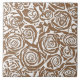 Tile in a modern, semi-abstract, all over pattern of roses and buds - mixed media digital art in deep taupe tan / stone beige and white
