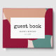 Multi-purpose guestbook: A very modern wedding suite for the lovers of contemporary design: abstract shapes with subtle colours like paprika red, pine tree green and old pink. Simple and bold at the same time. You can easily change the font used for the text as you like.
