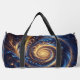 Modern Abstract Space Royal Blue and Gold Swirls Duffle Bag