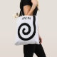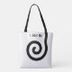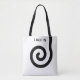 Modern abstract spiral on black and white Tote Bag. Trendy shopping bags. Text can be personalised.