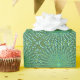 Wrapping paper in an Mid-Century Modern inspired, digitally created, textile pattern - starbust design in shades of pale aqua, jade green, and lime on a deep jade green background