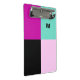 A stylish and modern mini clipboard with an abstract colour block design. With colour sections in magenta, black, turquoise and pink, the clipboard adds a vibrant splash of colour to your everyday tasks. The back of the clipboard is plain magenta. Personalise the trendy clipboard with an initial, which will appear as a monogram on the top right of the design.