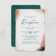 Modern Abstract Ethereal Watercolor Dark Teal & Copper Wedding Reception Invitations. This modern Insert card is beautify hand-painted with rich colours that are perfect for Fall. Shown in the Dark Teal Wedding Colour Palette colorway of: Dark Teal Peacock Green, Copper Rust, Dusty Gold, Almond Grove, and Bisque Beige. With faux Metallic glitter foil details, and a gorgeous signature script font with tails, the ethereal watercolor wedding collection is sure to make your wedding memorable and beautiful!