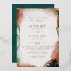 Elegant Abstract Ethereal Watercolor Teal & Copper Wedding Invitations with choice of real foil in rose gold, silver, or yellow gold. This modern wedding invite is beautify hand-painted with rich colours that are perfect for Fall. Shown in the Dark Teal Wedding Colour Palette colorway of: Dark Teal Peacock Green, Copper Rust, Dusty Gold, Almond Grove, and Bisque Beige. With real Metallic foil printed details, and a gorgeous signature script font with tails, the ethereal watercolor wedding collection is sure to make your wedding memorable and beautiful! To see more, search for Chic Paperie's 2021 wedding collections to see more trendy designs and wedding colours for this year.