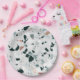 This striking artwork features a white and green marble adorned with a vibrant array of colours, creating a captivating terrazzo pattern. Designed by Looly Elzayat, this modern and abstract piece embodies minimalism while offering a dynamic visual experience. Perfect for print-on-demand applications, it allows you to design your own product, adding a touch of elegance and creativity to any space.