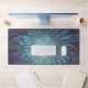 Modern Abstract Trendy Blue Flower Fractal Art Desk Mat
