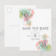 Modern Abstract Tropical Pink & Green Wedding Save Announcement Postcard